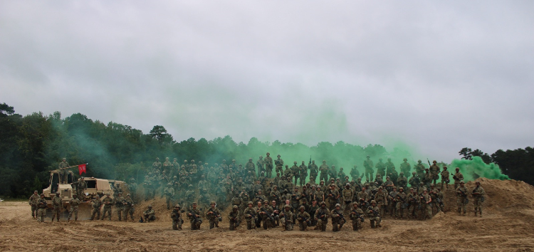 GSDF Soldiers celebrate the end of a week-long training exercise supporting 177th Engineers at Fort Stewart.