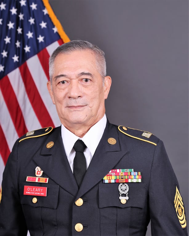 Command Sgt. Maj. O’Leary is among four generations of his family to have served in the military. His grandfather served in the Philippine American War (1900-1901), with 35th Volunteer Infantry Regiment. His father served in World War II, surviving the Bataan Death March. His eldest son retired from the U.S. Air Force, having served in Desert Shield/Desert Storm.